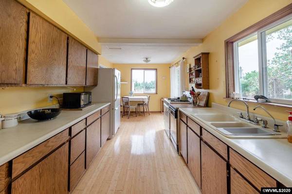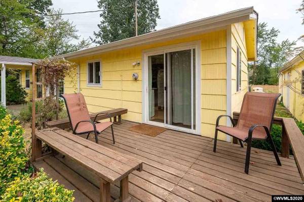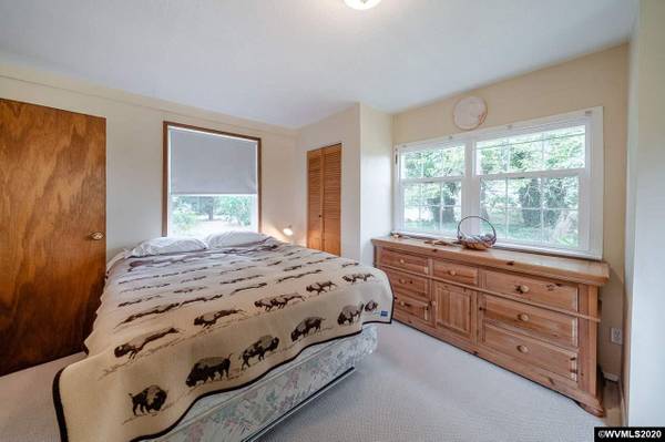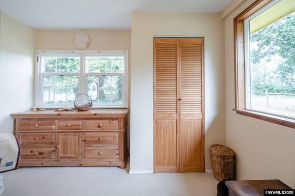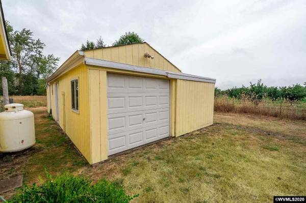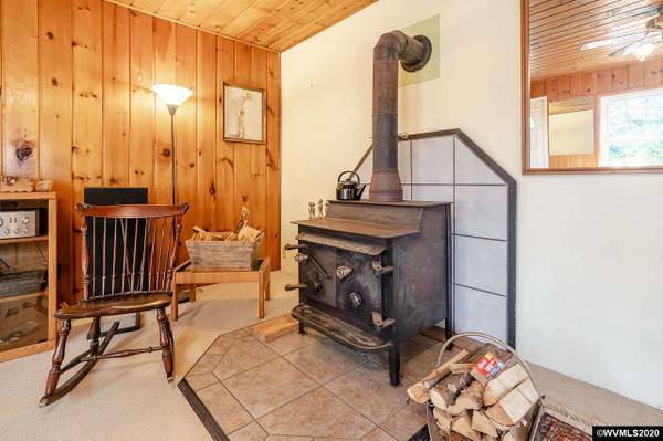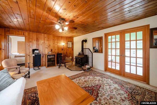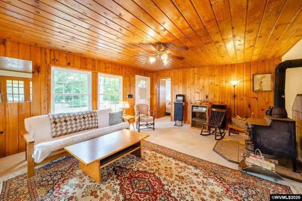 Country Living at its best! Surrounded by Farmland & Orchard providing total solitude! Gated entry to 2 acres w/trees & pasture. Raised beds, grapes, chicken coop, wood shed & pond. Plus 1 room guest cottage. Home features 935 SF w/1 bdrm, 1 bath, Cozy Living Rm w/knotty pine ceiling & walls, woodstove. French Doors to Sunroom/Family Rm w/vaulted ceiling, skylight & access to backyard. Kitchen & Dining Combo w/bamboo flooring. Utility room w/built-ins; Newer vinyl windows.