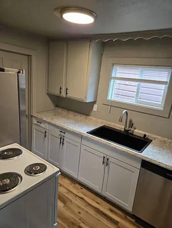New paint, laminate flooring, garage, fenced yard, dishwasher, washer and dryer hookups.