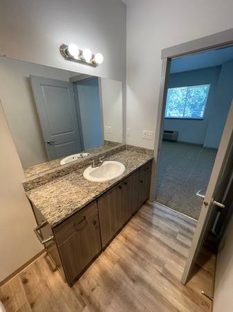 The Fountains in South Salem is a wonderful place to call home! Offering a 2 bedroom, 2 bath 3rd floor apartment with granite countertops, wood laminate flooring in kitchen dining and bathrooms. Stainless appliances and a full size washer and dryer. A/C and a deck with a storage closet.