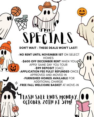 🔥 NO RENT until November 1st on select homes