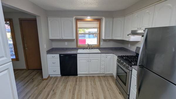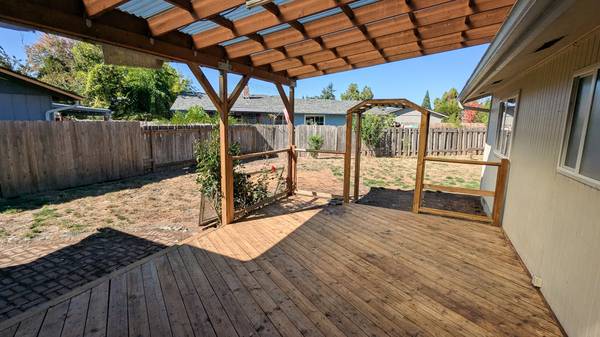 This home features a large fenced backyard with a covered deck and storage shed. The kitchen has a refrigerator, stove/oven dishwasher and double sink. There is a dining area off the kitchen with a sliding glass door leading to the backyard. Other features of the home include a gas fireplace, gas forced air heating, air conditioning, washer/dryer hook-ups and an attached two car garage