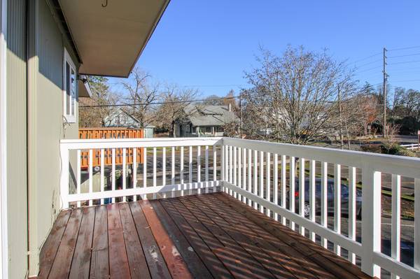 This upstairs unit features a sliding glass door that leads to its own deck. It includes lots of storage in the kitchen which also has a refrigerator, double sink and stove/oven. This complex includes onsite laundry and off-street parking.
