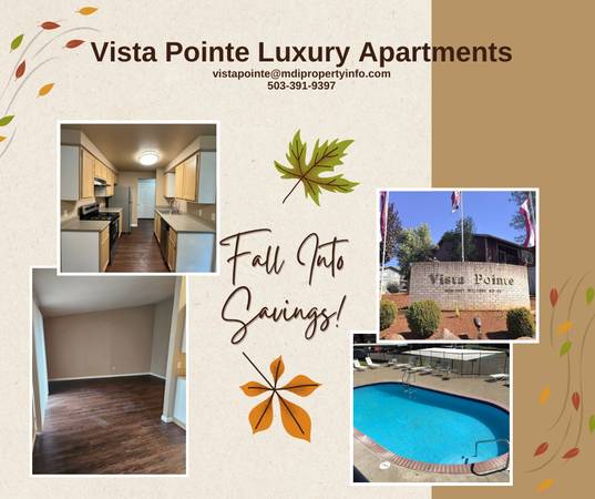 Vista Pointe Luxury Apartments, you will be proud to call this community your home! We are just seconds away from I-5 which allows a short commute to anywhere your heart desires. Living at Vista Pointe you will find yourself located near multiple parks, shopping, golfing and local attractions. Our office staff is professional and friendly and we always strive to give our residents top notch service. You can also expect yearly resident functions such as summer barbecues, holiday parties, ice cream socials and more. Stay out of the rain with covered parking or ask the manager if there are any garages available.