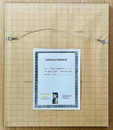 The artist is an Oregon artist who creates richly colored and amazingly detailed paintings of mostly botanical subjects. Her originals can be found at a gallery in Bend and range in price between $700-$1800.