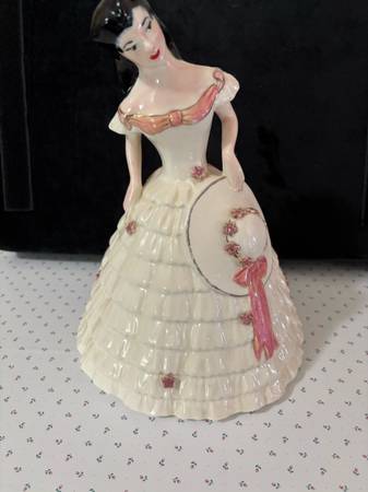 Ceramic Southern Bell 9 1/2” high 6 1/2” wide at base Beautifully made Always has reminded me of Scarlett on Gone with the Wind!