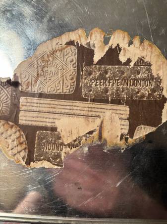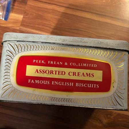 Vintage Peek Freen’s Tin Box 9”x9”X 4 3/4” tall Small amt rust inside on bottom One small dent on Lid Some permanent ink writing on lid