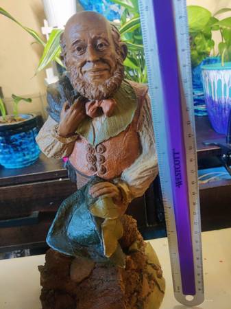 "Thistle" Tom Clark Cairn Gnome, specifically item #1029, a retired Scottish Woodspirit figurine from 1984. This belonged to my grandmother and was given to me when she passed. He was a collector's item that she loved dearly, so he spent the majority of his life in her home in a box or in a display case. Since then he has been in his box packaged. I'm seeing them online for anywhere between 40 and $60.