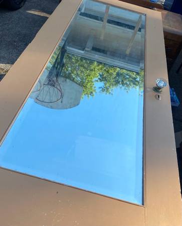 Vintage solid interior door. One side has a mirror. Comes with vintage hardware, including glass door knobs. 29 13/16 x 79 9/16. $45. Text show contact info