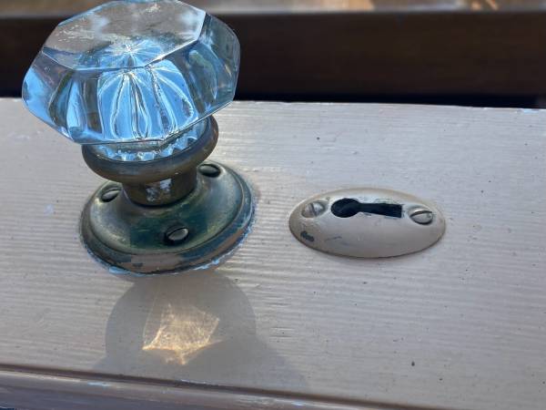 Vintage interior door with hardware and glass knobs - $45 (Salem)
