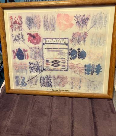 VINTAGE NATIVE AMERICAN FRAMED PLANT DYE CHART 17” x 21” LOCAL CASH SALES