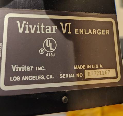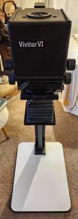 "Vivitar VI Photo enlarger was a modular enlarger designed and made by Vivitar from 1978. It could use a monochrome or color head, and cover formats up to 6x9cm" - copied from Wikipedia.