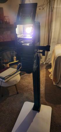 This outdated but timeless piece of technology still operates mechanically and electrically, once plugged in and switched on. It is equipped with a high power German-made magnifying lens with cover, lightbulb, large convex lens, and slide holder.