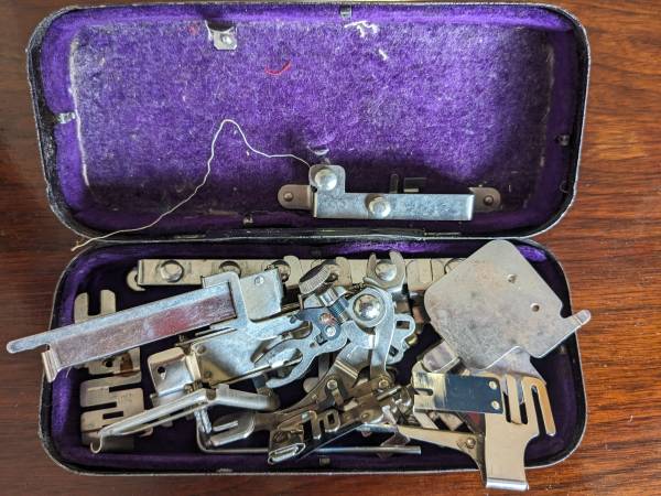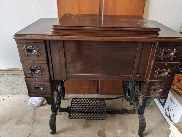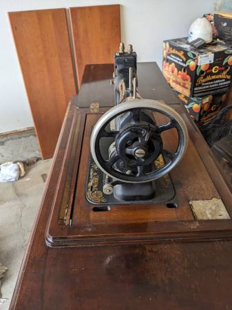 Vintage sewing machine great condition!! Just needs some cleaning ... Really cool peice. Comes with some accessories in a small box posted in pictures 250 OBO.. you pick up only .. smoke free and...