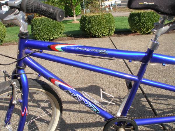 Kent tandem bike for sale with dual drive system. Has shimano 21 speed gears. In good condition and rides well. I am asking $200 obo.