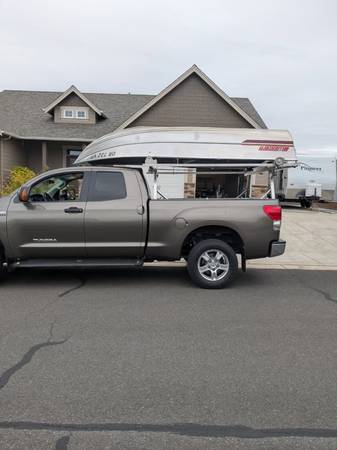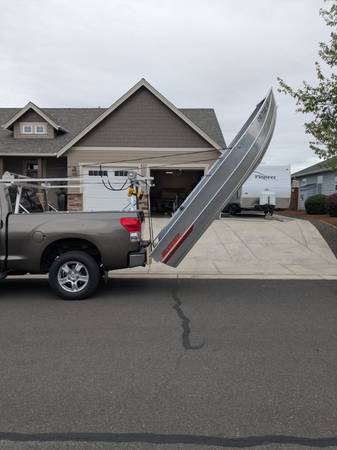Eide aluminum automatic boat loader and rack, comes with winch that runs using a drill or hand crank. Mounted in a Toyota tundra. In great shape and ready to use. Was used to haul our boat to the lake while pulling our travel trailer. Works awesome.