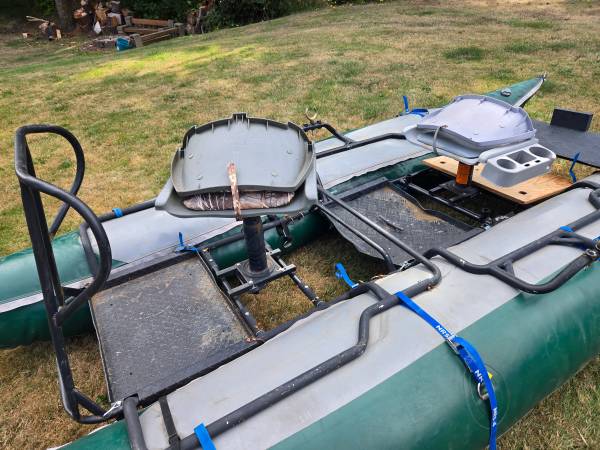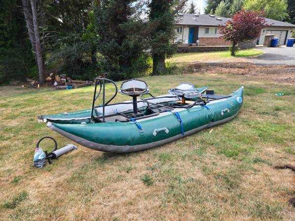 12 ft Aire. Great for our coastal rivers. I upgraded to a 14ft raft for multi day trips, but this has treated me well. Does have one patch, professionally done by Aire in boise. Not an issue. Let me...