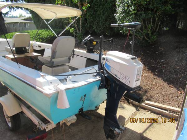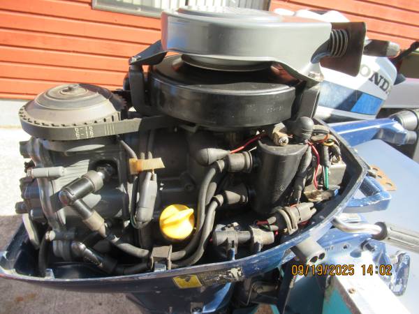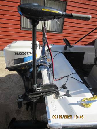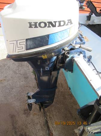 7.5 hp 4 stroke Honda in excellent shape, I have put less than 30 hrs on engine. Paid $600, asking 450.00