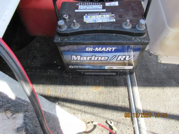 Accessories: New Bimart marine battery $50, 2nd older battery $20
