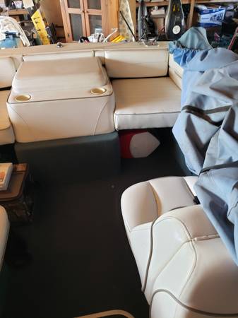 I have for sale/trade a super nice 19' ski/fish/family fun boat. You hear the term like new a lot this one is. Rated for eight passengers. It is wider than some boats in this category which makes it more stable-it doesn't tilt badly when one person goes to the side, also handles well in rough water. Has lots of new items including new minn-kota 55, Kenwood stereo and speakers and Garmin fishfinder-sonar. It has very tasteful new blue accent paint and graphics. Galvanized trailer in excellent condition [you will never have to worry about rust] , bearing buddies and three new tires from Les Shwab. It has two tops and a cover but I never use it since it is always stored inside. I will be glad to offer my creeper to inspect the bottom. There no damage whatsoever. Please take a look at the outdrive in the pictures [ the skeg is not damaged or bent and the prop is in excellent condition [compare this to many other boats that have damage on outdrive due to hitting rocks or other obstructions. It has always been operated with care and has never been in salt water. The 3.0 MerCruiser is economical and reliable but has plenty of power [it pulls skiers and tubers no problem and can hit 40mph plus]. It has two nearly new batteries [one for the engine and accessories and one for the trolling motor [the trolling motor has a gauge that tells how much power is available but generally will run all day.] A super clean and cool boat that is roomy, comfortable and does not have the damage you normally see in a boat this age. It has been fully winterized each year and stored inside. I believe the weight of the boat and trailer is around 3200 lbs so it doesn' take a large vehicle to tow it and it does tow very well. I have clear and clean Oregon titles in my name in my hand and all the licenses and fees are up to date. I am asking 11k but will consider trades for a collector car [no junk or projects], or a good pickup. Also willing to look at mustangs and Camaros. I am just outside of Salem ne. I can be contacted through CL email Thanks