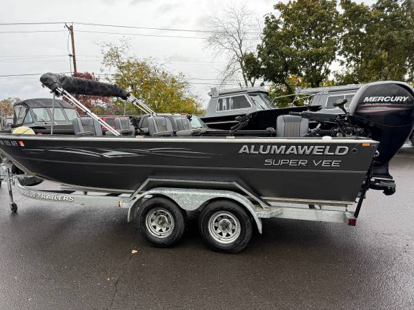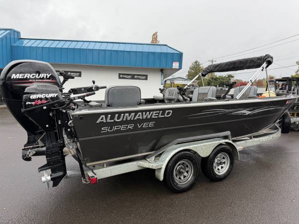 One owner, Alumaweld Super Vee Pro. This is the widest beamed sled in Alumawelds lineup and it works great powered with the Merc 150 tiller jet. These don't come through very often. Save THOUSANDS over new. Call quickly to reserve with a refundable hold deposit.