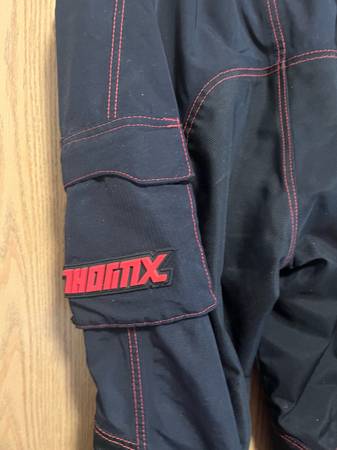 RIDING GEER COAT XL & PANTS 36 & 29” L LOT OF ZIPPERS BOTTOM BACK Of right LEG HAS LITTLE DAMAGE NE SALEM