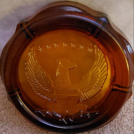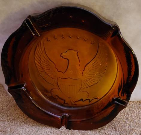 Ashtray Amber Glass w/ American Eagle Extra Large 10" - collectibles...