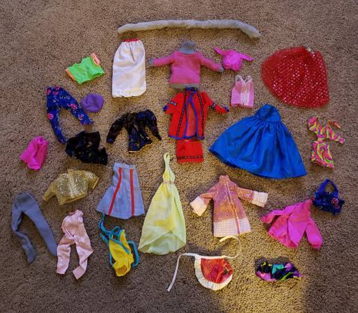 Collection of Barbie Dolls and Accessories, including extra clothing.