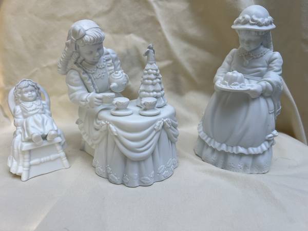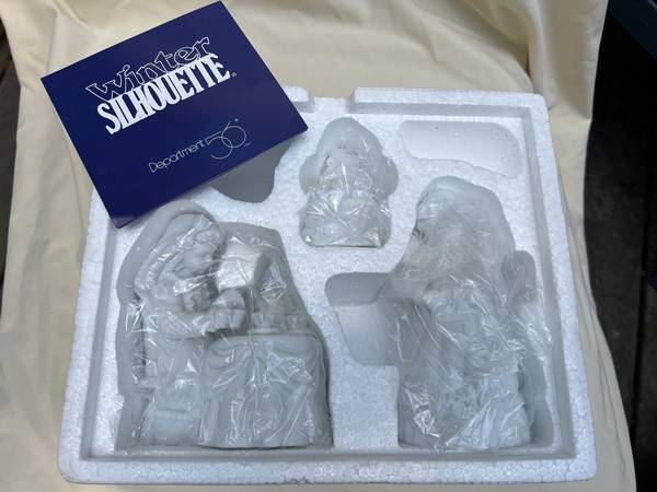 Department 56 Winter Silhouette Christmas tea white porcelain. Three pieces. New in box.