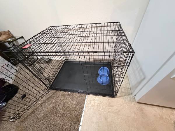 Super large dog kennel I would like taken off of my hands. In astonishing condition with a very fast and easy set up along with cleaning since the bottom is able to slide out. There’s also 2 entry ways, so there’s no hassle trying to get your animal out/ in. Am asking $100 but willing to negotiate a little bit. It is almost brand new, barely used, with no signs of wear or tear.