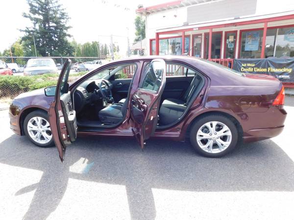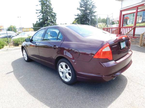 Trim: SE sedan Mileage: 125k miles Exterior Color: Bordeaux Reserve Interior Color: Charcoal Black Engine: 3.0L 6 Cylinders Drive: fwd Transmission: Automatic VIN: 3FAHP0HG7CR273818 Seller Comments: The 2012 Ford Fusion 4dr Sdn SE FWD, featuring a striking Bordeaux Reserve Metallic Red exterior, is a standout choice for those seeking both style and performance.This model is powered by a robust 3.0L 24V V6 Duratec engine, offering a seamless blend of power and efficiency with its flex fuel capability.Its sleek design is complemented by a sophisticated Charcoal Black interior, which adds a touch of elegance to your driving experience. Equipped with the 200A Equipment Group Order Code, this Ford Fusion promises a suite of premium features that enhance comfort and convenience on the road.The interior is thoughtfully designed, ensuring both driver and passengers can enjoy a comfortable ride.With its front license plate bracket and adherence to California emissions standards, this car is ready for the road in any state, ensuring compliance with stringent environmental regulations. The 2012 Ford Fusion's 4dr Sdn SE FWD style ensures a roomy and inviting cabin, making it ideal for both daily commutes and longer journeys.Its impressive engine capabilities coupled with its eye-catching color and high-quality interior detailing make it a compelling choice in the midsize sedan market.Experience the perfect mixture of innovation and reliability with the 2012 Ford Fusion, a car that delivers on all fronts, from aesthetic allure to practical performance.CALL OR TEXT 503-213-4101 We are a CUDL Dealer! (Credit Union Direct Lending) We are so proud to be one of the few used car dealers who received the 2022, 2023, 2024 Reputations 800 Award which is given to dealerships who achieve a reputation score of over 800. We wanted to set ourselves apart from every other used car dealer by honoring a commitment to full transparency.We are a CARFAX Advantage Dealer with links to full reports on our website.Of course all of our vehicles undergo a full inspection by our ASE Certified mechanics.You are more than welcome to have your own mechanic do an independent inspection.Our only objective is to provide you with 5 Star Service irrespective of whether or not you purchase a vehicle.