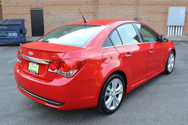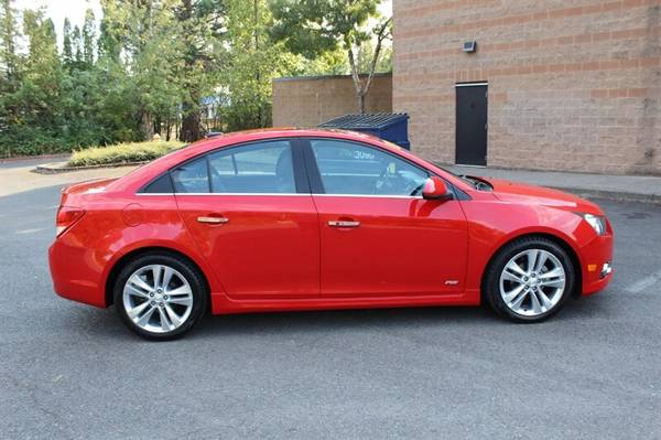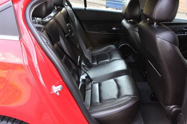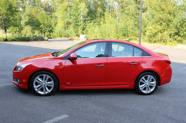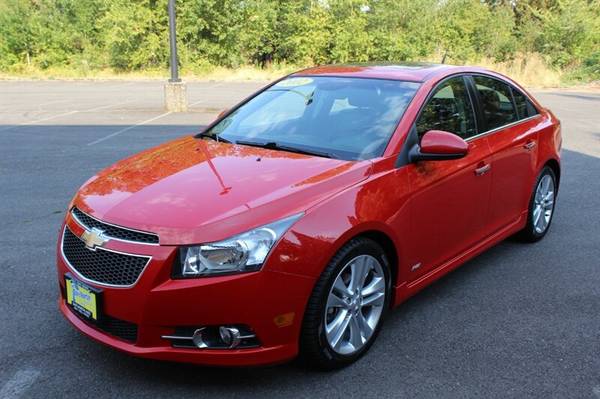 Presenting the 2012 Chevrolet Cruze LTZ, a sophisticated sedan that combines style, efficiency, and performance. Under the hood, you'll find a robust Ecotec 1.4L Turbo engine, delivering a perfect balance of power and fuel economy. The exterior shines in Victory Red, while the interior boasts a luxurious Jet Black finish. With less than 75,000 miles, averaging less than 6,000 miles per year, this Cruze is a low-mileage gem.Equipped with factory default features, this Chevrolet Cruze LTZ offers a host of amenities to enhance your driving experience. Cruise control, remote keyless entry, power windows, and heated front seats are just a few of the conveniences included. Stay connected with Bluetooth connectivity and enjoy your favorite tunes with the premium sound system.Efficiency is key with the 2012 Cruze LTZ, achieving an impressive 26 MPG in the city and 38 MPG on the highway. This vehicle is in excellent overall condition, ensuring a smooth and reliable ride for years to come. Rest assured with a clean CARFAX report, highlighting the vehicle's well-maintained history.Experience the perfect blend of comfort, performance, and efficiency with the 2012 Chevrolet Cruze LTZ. Visit our dealership today to test drive this exceptional sedan and elevate your driving experience.