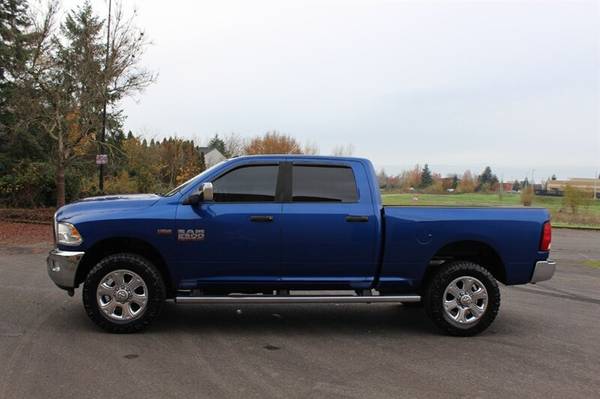 Introducing the 2014 RAM 2500 SLT, a robust pickup that combines power and style. Equipped with a formidable HEMI 6.4L V8 engine, this truck delivers exceptional performance for both work and play. The striking Blue Streak Pearl Coat exterior is complemented by a comfortable Black/Diesel Gray interior, designed for durability and ease of use.Factory default features include a spacious cabin with premium cloth seating, a touchscreen infotainment system with Bluetooth connectivity, and a rearview camera for enhanced safety. Additional features include power windows and locks, cruise control, and a multifunction steering wheel, ensuring convenience at your fingertips.This RAM 2500 SLT is in very good overall condition, having been meticulously detailed and maintained. With a clean CARFAX report and only one previous owner, this vehicle is ready to serve you with reliability and style. Experience the perfect blend of capability and comfort with this exceptional truck.