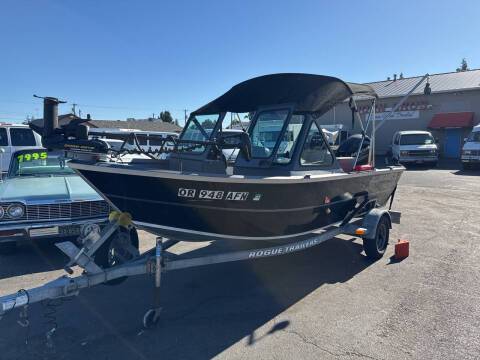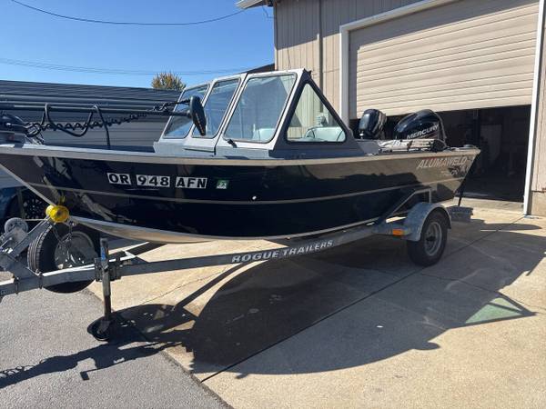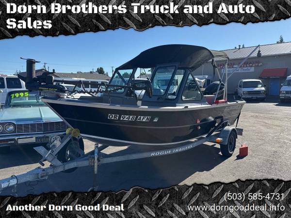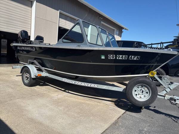2015 16FT ALUMAWELD TALON, 50HP MERCURY 4 STROKE, 9.9HP MERCURY KICKER, MINN KOTA POWER DRIVE BOW MOUNT TROLLING MOTOR WITH SPOT LOCK AND AUTO PILOT, MANUAL CANNON DOWN RIGGER, FISH FINDER, ROD HOLDERS AND FULL TOP. Rogue galvanized single axle. The interior is all vinyl floor to ceiling which makes it incredibly easy to clean and maintain. All the right features r fast. Dealer # DA0507 Come see it at 3130 Portland rd Salem Oregon or Call Mike or John Dorn at 503-585-4731