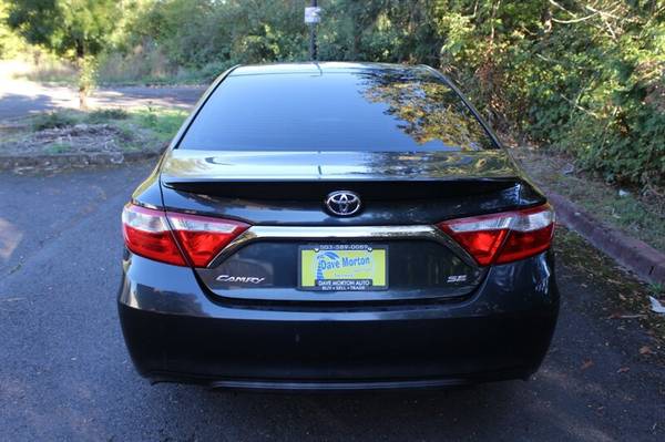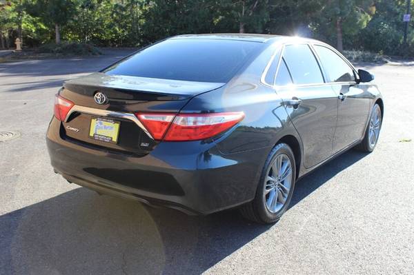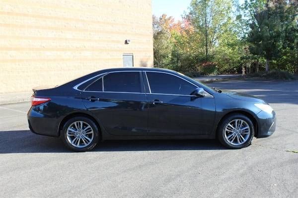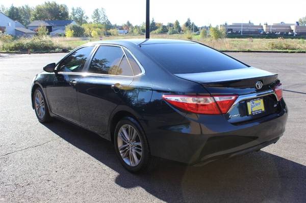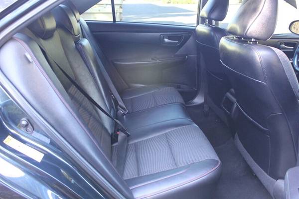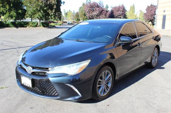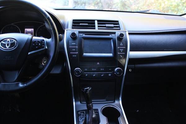Introducing the 2015 Toyota Camry SE, a remarkable blend of style, efficiency, and reliability. This sedan is presented in a striking Blue Crush Metallic exterior, which not only enhances its aesthetic appeal but also ensures a modern and vibrant presence on the road. The sleek lines and sporty design elements of the Camry SE make it an eye-catching choice for drivers who appreciate both form and function.Under the hood, the Camry SE is powered by a robust 2.5L 4-cylinder engine, delivering an impressive balance of performance and fuel efficiency. With an EPA-rated 25 MPG in the city and 35 MPG on the highway, this vehicle is designed to keep you on the road longer while minimizing fuel stops. Step inside to discover a well-appointed interior that features a sophisticated Black cloth upholstery, providing comfort and style for both driver and passengers. The spacious cabin offers ample legroom and headroom, making it ideal for both daily commutes and long road trips.The 2015 Camry SE comes equipped with a variety of factory default features designed to enhance your driving experience. Key highlights include:- **Entune Audio System:** Enjoy your favorite music with the integrated Entune audio system, which includes a 6.1-inch touchscreen display, Bluetooth connectivity, and a six-speaker sound system. Listen to music, podcasts, or make hands-free calls effortlessly.- **Rearview Camera:** Maneuvering in tight spaces is made easier with the rearview camera, which provides a clear view of what's behind you when reversing, enhancing safety and convenience.- **Sport-tuned Suspension:** The sport-tuned suspension ensures a responsive and agile driving experience, allowing you to navigate curves and corners with confidence.- **Alloy Wheels:** The stylish 17-inch alloy wheels not only enhance the vehicle's sporty appearance but also contribute to improved handling and performance.- **LED Daytime Running Lights:** The inclusion of LED daytime running lights not only adds to the modern look of the Camry but also increases visibility for improved safety.- **Power-adjustable Driver's Seat:** Experience personalized comfort with the power-adjustable driver's seat, allowing you to find the perfect driving position with ease.This 2015 Toyota Camry SE is in very good overall condition and has been meticulously detailed to ensure it looks its best. Additionally, it boasts a clean CARFAX report, providing peace of mind regarding its history and overall reliability.If you're in the market for a dependable sedan that combines
