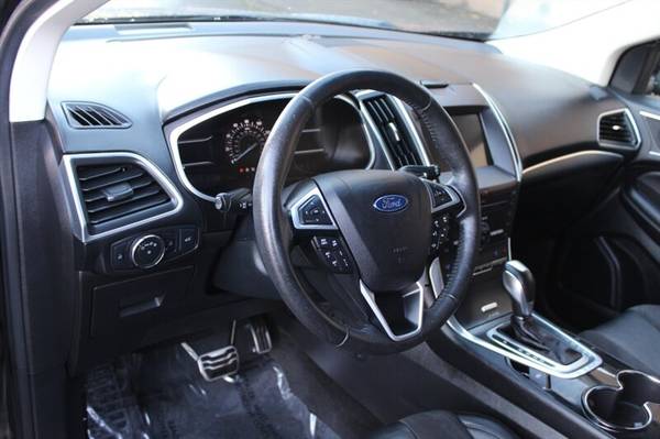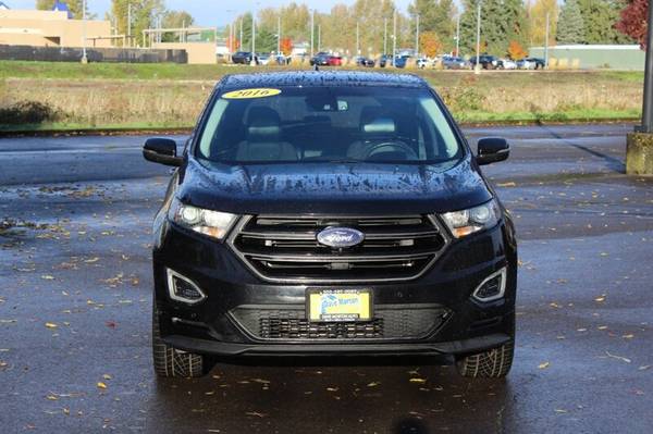 Introducing the 2016 Ford Edge Sport, a dynamic crossover that combines performance with luxury. Powered by a robust EcoBoost 2.7L Turbo V6 engine, this vehicle delivers exhilarating power while maintaining impressive fuel efficiency, achieving 17 MPG in the city and 24 MPG on the highway.The sleek exterior is finished in a striking Shadow Black, complemented by a sophisticated Ebony interior that exudes style and comfort. Factory default features include a panoramic sunroof, sport-tuned suspension, and 20-inch aluminum wheels that enhance both aesthetics and handling. Inside, enjoy premium leather-trimmed seating, a state-of-the-art SYNC 3 infotainment system with an 8-inch touchscreen, and a premium audio system for an immersive driving experience.This 2016 Ford Edge Sport is in excellent overall condition and comes with a clean CARFAX report, ensuring peace of mind for its next owner. Experience the perfect blend of performance, comfort, and reliability in this exceptional vehicle.