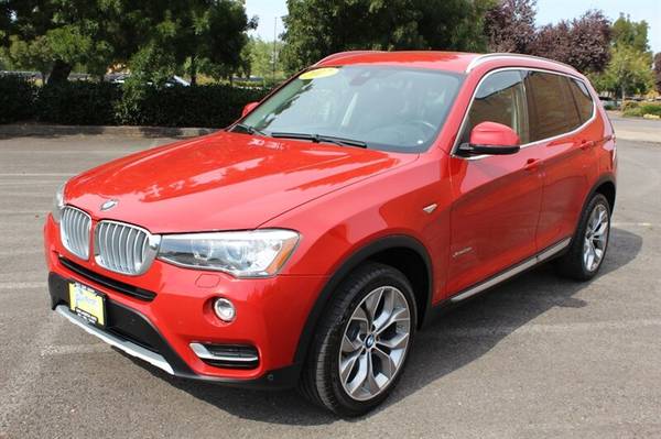 Introducing the 2017 BMW X3 xDrive28i, a luxury SUV that seamlessly blends performance, style, and technology. Equipped with a robust 2.0L Turbo engine, this vehicle delivers a dynamic driving experience while maintaining impressive fuel efficiency with 21 MPG in the city and 28 MPG on the highway. Presented in a striking Melbourne Red Metallic exterior finish complemented by a sophisticated Black interior, the aesthetics of this X3 exude elegance and sportiness. Meticulously maintained, this vehicle is in excellent overall condition, ensuring a premium ownership experience.As a BMW, this X3 comes with a host of factory default features that elevate comfort, convenience, and safety. From the advanced infotainment system with navigation to the luxurious leather upholstery, every detail exudes craftsmanship and innovation. With a clean CARFAX report, you can have peace of mind knowing the vehicle's history is transparent and reliable.Experience the perfect blend of performance and luxury with the 2017 BMW X3 xDrive28i.