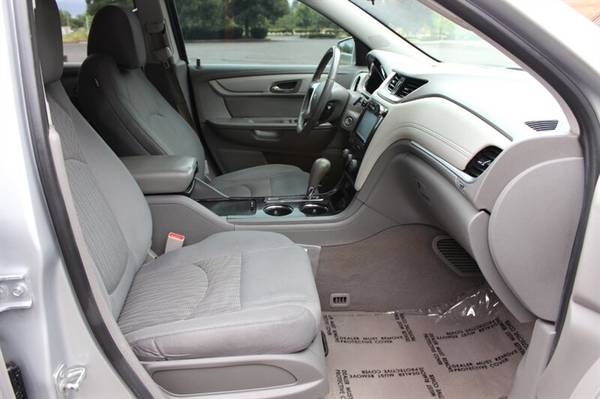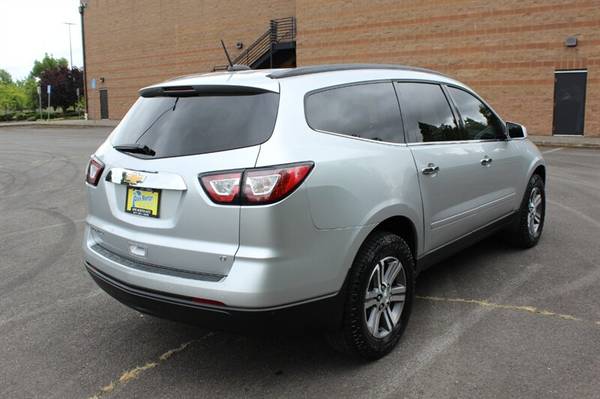 Introducing the 2017 Chevrolet Traverse LT, a versatile and reliable SUV designed to meet your family's needs with style and comfort. Equipped with a powerful 3.6L V6 engine, this vehicle delivers a smooth and efficient driving experience. The Champagne Silver Metallic exterior paired with the elegant Dark Titanium/Light Titanium interior creates a sophisticated look that is sure to turn heads on the road. This well-maintained vehicle boasts factory default features that enhance both safety and convenience, including a backup camera, Bluetooth connectivity, tri-zone automatic climate control, keyless entry, and a 6.5-inch touchscreen infotainment system.With a fuel efficiency of 15 MPG in the city and 22 MPG on the highway, the Chevrolet Traverse LT offers both power and economy for your daily commute or road trips. This vehicle is in excellent overall condition and comes with a clean CARFAX report, providing you with peace of mind as you drive off the lot.Experience the perfect blend of performance, comfort, and style with the 2017 Chevrolet Traverse LT. Contact us today to schedule a test drive and make this impressive SUV yours.