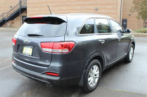Introducing the 2017 Kia Sorento LX V6, a versatile midsize SUV that combines power and efficiency with a sleek design. Powered by a robust 3.3L V6 engine, this Sorento delivers a balanced performance, achieving 17 MPG in the city and 23 MPG on the highway. The exterior is elegantly finished in Titanium Gray, while the interior boasts a sophisticated Satin Black upholstery, providing a stylish and comfortable driving environment.This model comes equipped with a range of factory-default features, including a 7-inch touchscreen infotainment system with Bluetooth connectivity, a rearview camera, and a six-speaker audio system for an enhanced driving experience. Safety is prioritized with features such as traction control, electronic stability control, and a suite of airbags. The spacious interior includes seating for up to five passengers, with a 60/40 split-folding rear seat to accommodate various cargo needs.This vehicle is in very good overall condition, having been fully detailed and maintained, and comes with a clean CARFAX report, ensuring peace of mind for its next owner. Experience the perfect blend of comfort, capability, and style with the 2017 Kia Sorento LX V6.