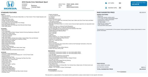 📋 CARFAX is available on this 2018 Honda Civic Hatchback Cruise Control Steering AssistÂ