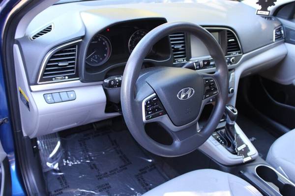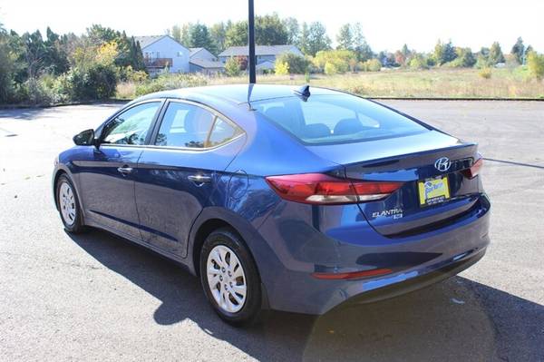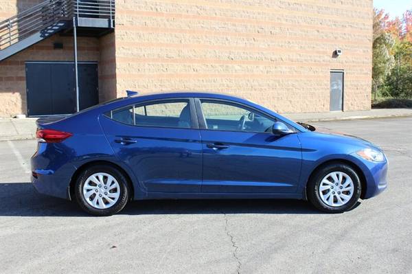 Introducing the 2018 Hyundai Elantra SE, a stylish and efficient compact sedan finished in a striking Electric Blue exterior with a refined Gray interior. Powered by a responsive Nu 2.0L engine, this vehicle delivers an impressive fuel economy of 29 MPG in the city and 38 MPG on the highway, making it an excellent choice for both daily commutes and long drives. The Elantra SE comes equipped with a suite of factory-default features designed for comfort and convenience. Enjoy a user-friendly 7-inch touchscreen display with Apple CarPlay and Android Auto compatibility, allowing seamless integration with your smartphone. Additional features include a rearview camera for enhanced safety, Bluetooth connectivity for hands-free calling, and a six-speaker audio system for an enjoyable listening experience. This vehicle is in very good overall condition, having been meticulously detailed and boasting a clean CARFAX report. Experience the perfect blend of style, performance, and reliability with the 2018 Hyundai Elantra SE.