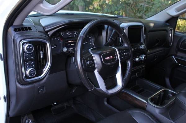 Introducing the 2021 GMC Sierra 1500 SLT, a robust and versatile pickup truck that seamlessly combines power, comfort, and advanced technology. This exceptional vehicle is powered by the highly efficient Duramax 3.0L Diesel Turbo engine, delivering impressive torque and exceptional towing capabilities, making it perfect for both work and play. With an outstanding fuel efficiency rating of 22 MPG in the city and 26 MPG on the highway, the Sierra 1500 SLT ensures you can go further while making fewer stops at the pump.The exterior of this stunning truck is finished in a pristine Summit White, exuding a professional and polished appearance that commands attention on the road. The bold design features a prominent grille, LED headlamps, and a sculpted body that combine to create an aggressive yet refined look.Inside, the cabin is adorned with Jet Black leather upholstery, providing a luxurious and comfortable environment for both driver and passengers. The spacious interior is thoughtfully designed with high-quality materials and meticulous attention to detail, ensuring an enjoyable ride for everyone.The 2021 GMC Sierra 1500 SLT comes equipped with a comprehensive suite of factory-installed features aimed at enhancing your driving experience. These include:- **Infotainment System**: A state-of-the-art GMC Infotainment System with an 8-inch touchscreen display, Apple CarPlay, and Android Auto compatibility, allowing you to seamlessly integrate your smartphone for navigation, music, and hands-free communication.- **Safety Features**: Advanced safety technologies such as Forward Collision Alert, Lane Keep Assist with Lane Departure Warning, and a Rear Vision Camera, providing you with confidence and peace of mind on every journey.- **Comfort Features**: Dual-zone automatic climate control, heated front seats, and a heated steering wheel for optimal comfort in any weather condition.- **Storage Solutions**: Ample storage options including a rear under-seat storage compartment, multiple cupholders, and a spacious center console that ensures all your essentials are within reach.- **Connectivity**: A Wi-Fi hotspot capability and multiple USB ports throughout the cabin ensure that you and your passengers stay connected on the go.This 2021 GMC Sierra 1500 SLT is in very good overall condition and has been meticulously detailed to ensure it looks and feels like new. With only one previous owner and a clean CARFAX report, this truck offers peace of mind along with its impressive features.Experience the perfect blend of capability, comfort, and technology with the 2021