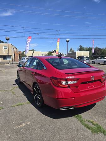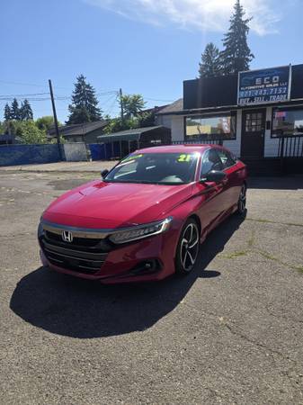 2021 Honda Accord Sport, a sleek and dynamic sedan designed for performance and style. This model is equipped with a responsive 1.5L Turbo I4 engine producing 192hp and 192ft. lbs. of torque, delivering a thrilling driving experience. The factory default features include a stunning red exterior paired with a sophisticated black interior, creating a modern and sporty look. Boasting low mileage of below 30,000 miles, averaging less than 6,000 miles per year, this Accord Sport offers exceptional fuel efficiency with 30 MPG in the city and 38 MPG on the highway. Meticulously maintained and in excellent overall condition, this vehicle is ready to impress on the road.