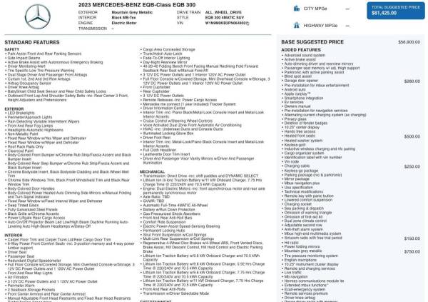 📋 CARFAX is available on this 2023 Mercedes-Benz EQB Keyless Go Hands Free Access Active Brake AssiÂ