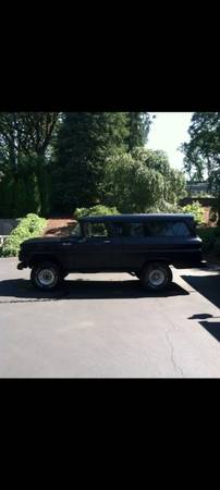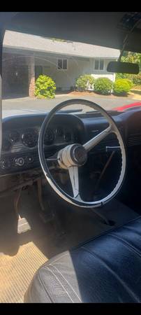 Rebuilt 350 (75 Caprice Interceptor) w/low miles with HEI. 4 speed manual. Hugger headers with custom pipes...vent out in front of rear tires. Loud and thunderous!! Geared low....pretty much to climb trees. Factory original locking hubs and all 3 rows of seats including the unicorn 2 man middle done in nice black vinyl.
