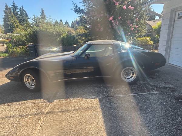 Black 1978 Corvette. 350 auto, New Tires. Car runs good but needs battery and minor body work. Double Roof. 04197 miles(rolled over) Asking $3500 OBO.