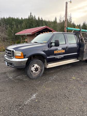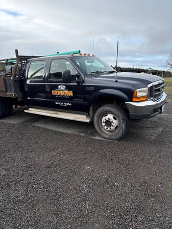 Ford 450 Crew Cab XLT ,Shop truck. This truck has served me well over the years. Retiring from my business and selling the equipment. It has new tires, 120 gal fuel tank, 7.3 power stroke diesel, pipe rack, 200 k miles, regular oil changes and service records. I bought it with reconstructed title but no problems. Would be willing to trade for a small tractor in good shape.
