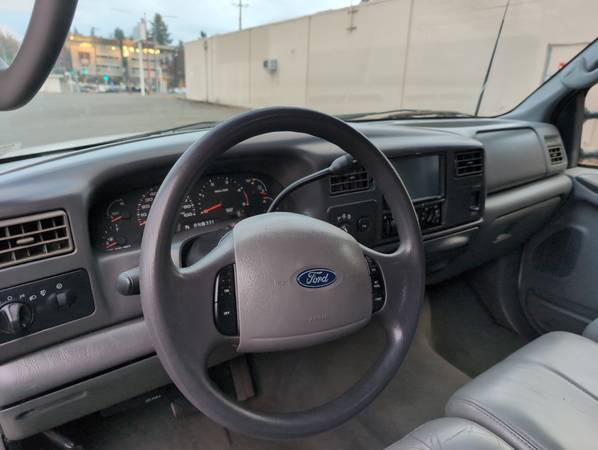 Automatic, 6.0 Powerstroke Turbo Diesel, Tow package, White and grey with grey leather interior, Heated power seats, power locks, power windows and mirrors, keyless entry and alarm, kill switch, fog lights, LED headlights, sliding rear window, overhead console and information center, double DIN touchscreen with bluetooth, backup camera, phone mirroring, late model wheels with good tires, recent fuel filter, transmission filter, and oil change, cold AC, block heater, Cruise and parking sensors inop. Some dents, scratches and paint peeling on bed and key marks on left side. Tags good for another year.
