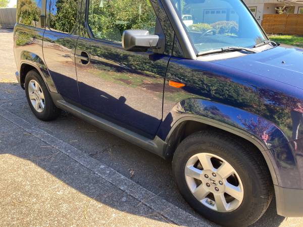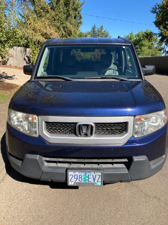 Blue pearl 2010 Honda Element EX for sale. Mileage is 127,000 miles. Car has not been in any accidents. Runs well, new battery. Interior fabric in good condition. Flooring is all rubber, so easy to clean and no carpet to stain! Has all original accessories. Two key fobs with keys. Great for camping, outdoor activities, and for times when more cargo space is needed. Please contact if interested in viewing the vehicle. Please know that the paint is not in perfect condition, but in my opinion, good condition. Driver side panel has small dent and the paint has some surface scratches on driver’s side. Great car overall, and spent many good years driving it!