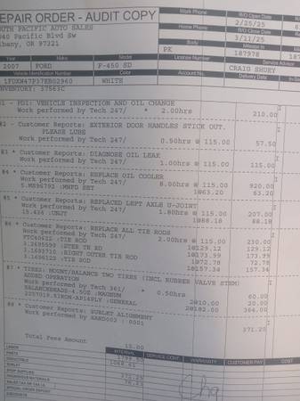 March 2025- new oil cooler, left axle u-joint, all tie rods, new front steer tires and alignment.