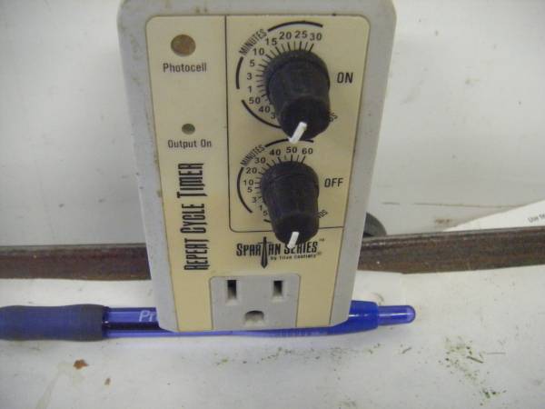 Titan Controls repeat cycle plug-in timer: turns load ON 5 seconds to 30 minutes, OFF 5 seconds-60 minutes. For example, you can turn a fan on for 10 minus, then off for 50 minutes; repeats indefinitely. Simple dial setting--no programming required...$15